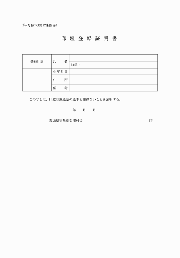 第1条 この規則は、美浦村印鑑条例(昭和50年美浦村条例第7号。以下「条例」という。)の施行に関し、必要な事項を定めるものとする。