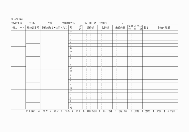 第17条 法第17条の3第2号に掲げる徴収金を予納しようとする者は、予納金納付(納入)申出書を村長に提出しなければならない。