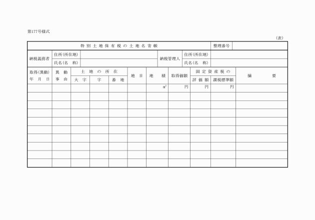 特別土地保有税(取得分)課税台帳 | 第13号 |