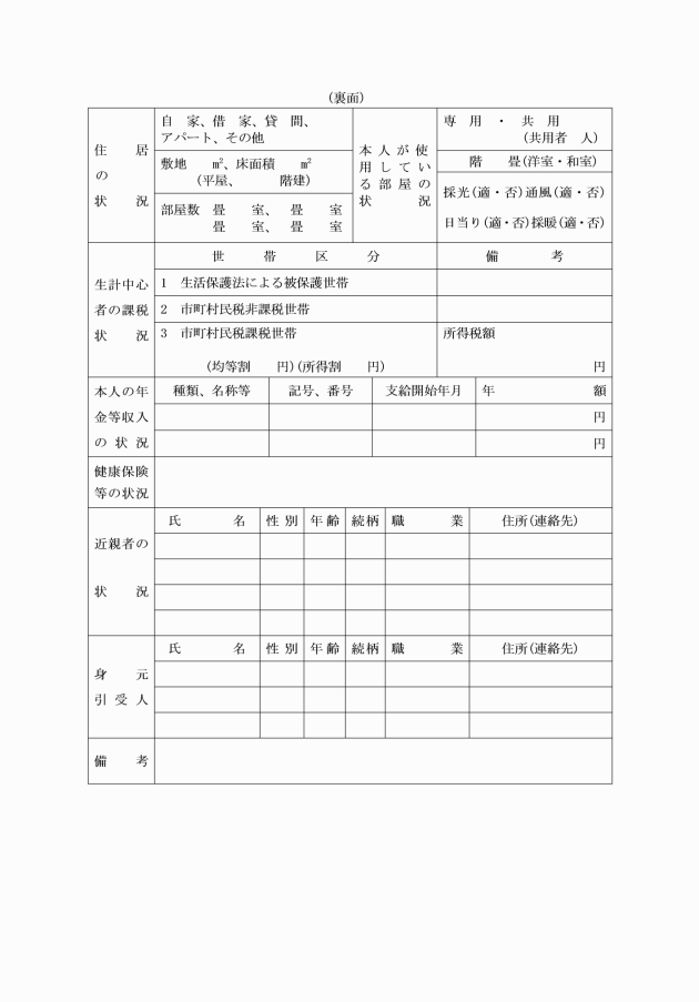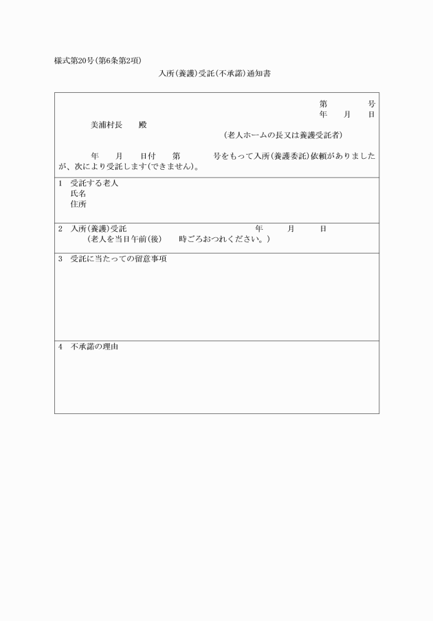 (養護受託申出書)