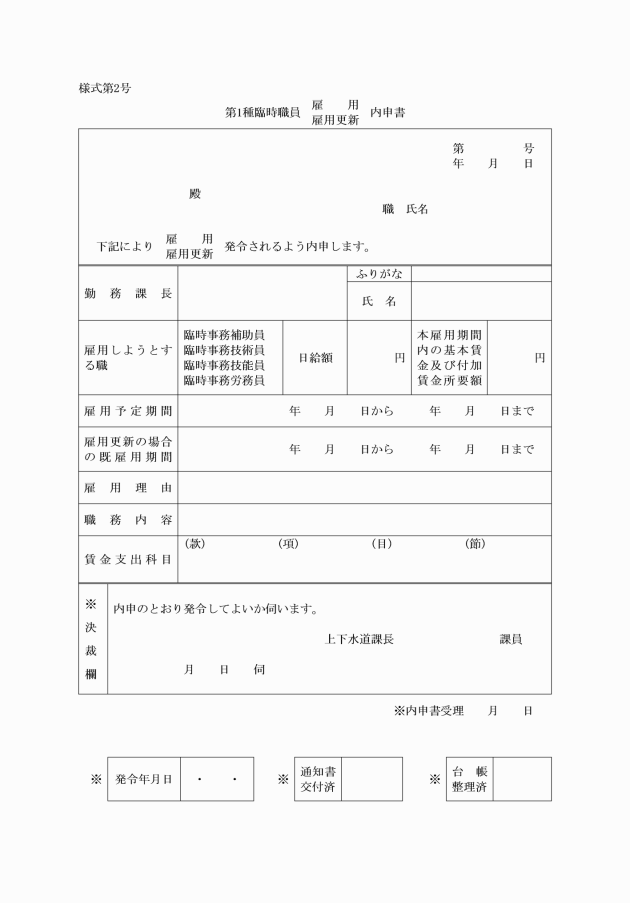 2 管理者は、第1種臨時職員を雇用するときは、当該被雇用者に発令通知書(様式第1号)を交付しなければならない。