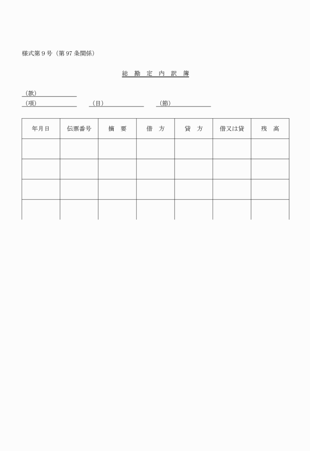2 総勘定内訳簿は、第14条第2項に定める勘定科目の節(項又は目までの科目については、それぞれ項又は目)について口座を設け、会計伝票により1件ごとに記帳するものとする。