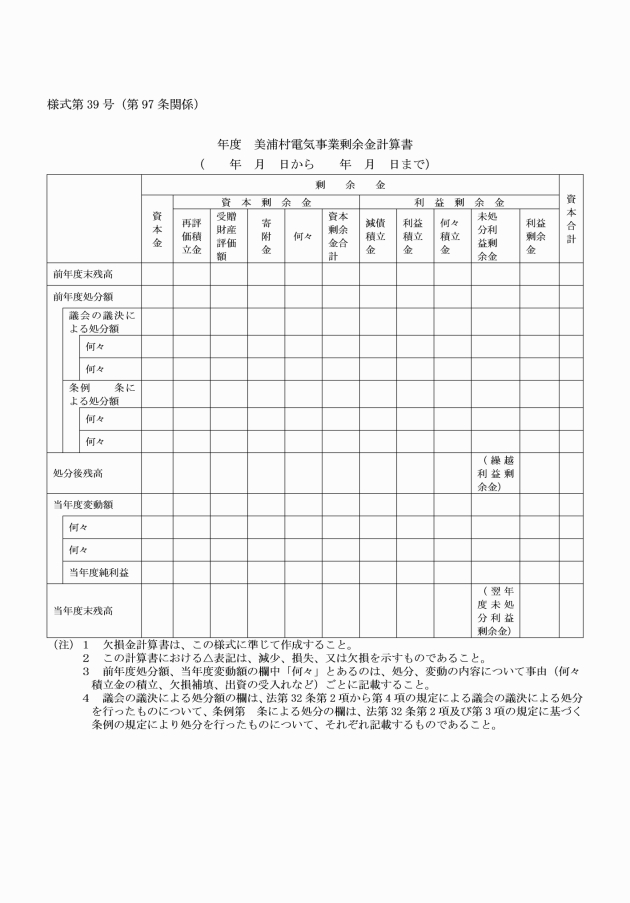 繰越利益剰余金年度末残高(繰越欠損金年度末残高) | 前年度未処分利益剰余金(前年度末未処理欠損金)の額から全年度利益剰余金処分額(前年度欠損金処理額)を控除して得た繰越利益剰余金(繰越欠損金)の額 | |||
