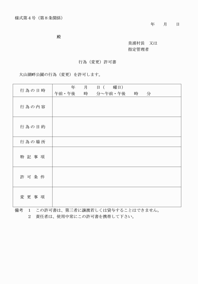 ○大山湖畔公園の設置及び管理に関する条例施行規則