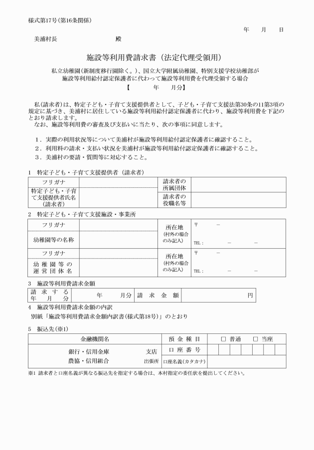 ○美浦村子育てのための施設等利用給付に係る手続に関する規則